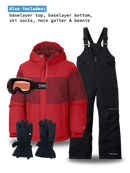 Winter is finally here, but your little one has outgrown all of last year’s snow gear. Fortunately, you can skip the shopping trip and choose this inclusive package with everything he’ll need on the mountain. Protect his core with a baselayer top and bottom, then suit him up in the 100g-insulated Adventure Ride Bib, with cuff guards and reinforced seams that stand up to heavy use. The insulated Alpine Action jacket is a complete winter sport solution, down to its helmet-compatible hood and ski pass pocket, and our gloves comes with insulation and an extra-long wrist gauntlet that seals out snow. A fleece cap, 50+ SPF fleece neck gaiter, and warm snow socks round out the package. We also added a pair of goggles, with anti-fog systems and UV protection that make them indispensable for winter sports.