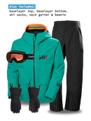 Engineered for serious winter athletes, this comprehensive ski package combines technical performance with layered warmth. The Helly Hansen Emiko Shell Jacket and Emiko Shell Pants deliver waterproof protection and insulation, while Smith goggles provide optical clarity on variable terrain. The North Face gloves offer dexterity and thermal control, complemented by moisture-wicking baselayers that regulate body temperature during intense activity. Included ski socks, neck gaiter, and beanie complete your system, ensuring every extremity stays protected. This curated collection represents industry-leading brands trusted by professionals - everything you need for confident, all-day mountain performance.