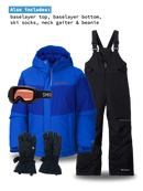 Winter is finally here, but your little one has outgrown all of last year’s snow gear. Fortunately, you can skip the shopping trip and choose this inclusive package with everything he’ll need on the mountain. Protect his core with a baselayer top and bottom, then suit him up in the 100g-insulated Adventure Ride Bib, with cuff guards and reinforced seams that stand up to heavy use. The insulated Alpine Action jacket is a complete winter sport solution, down to its helmet-compatible hood and ski pass pocket, and our gloves comes with insulation and an extra-long wrist gauntlet that seals out snow. A fleece cap, 50+ SPF fleece neck gaiter, and warm snow socks round out the package. We also added a pair of goggles, with anti-fog systems and UV protection that make them indispensable for winter sports.