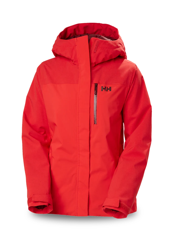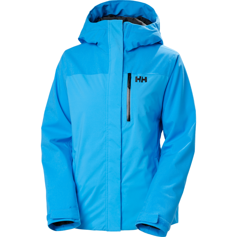 This Helly Hansen lightweight, powder-ready women’s ski jacket has the waterproof/breathable protection you need to enjoy a long day on the slopes. Underarm zip vents allow you to customize body temp to exertion level. Ski details include articulated sleeves for max mobility, a ski pass pocket, an adjustable powderskirt and a helmet-compatible hood.
