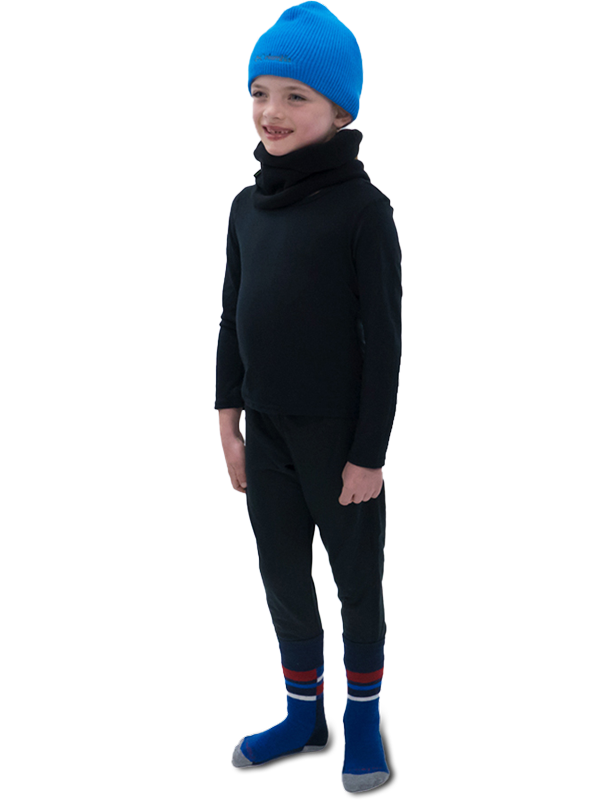 Most kids have a winter coat and boots, but they may not have a complete baselayer for arctic climates. We’ve got your young one covered with this collection of the basics: a snug baselayer top and bottom to keep their core warmth intact, fleece knit cap, 50+ SPF fleece neck gaiter, and warm merino long socks to keep the chill away from little toes.