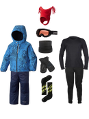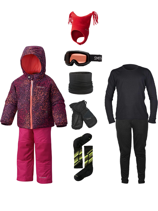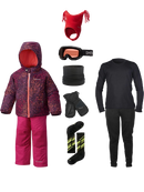 Ready to show your little one the joys of mountain sports, but don’t have the gear yet? Let us take care of everything with this comprehensive package of essential snow apparel from our top brands. Start with a Hot Chillys baselayer top and bottom to keep their core warmth intact. Then add the waterproof, durable Columbia Frosty Slope bib and matching Frosty Jacket, both fleece-lined and offering 100g of insulation. Protect their extremities with a 250g-insulated Columbia Pigtail Hat, a Bula neck gaiter to block cold air and provide 50+ SPF for their sensitive skin, Smartwool merino socks, and insulated mittens. We also included a pair of goggles, which give valuable UV protection from the strong high-altitude sunlight.